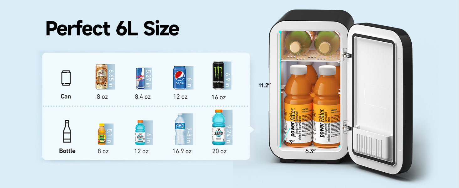 Black Mini Fridge for Bedroom – 6L Dual-Mode Cooler & Warmer