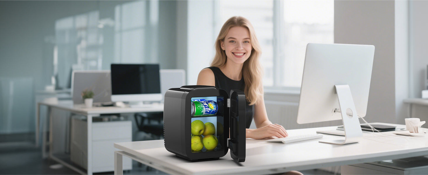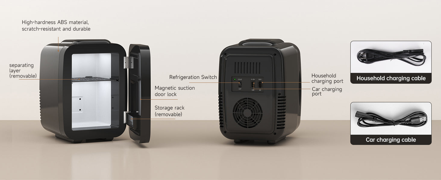 With AC and USB power support, this portable mini fridge works at home or in the car—perfect for bedrooms, offices, dorms, travel, and camping.