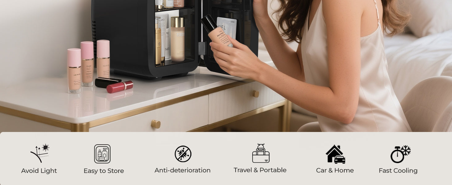 Ideal for skincare, drinks, snacks, and small essentials, it includes a removable shelf for flexible storage. Powered by a thermoelectric cooling system, it delivers stable performance with low energy use.