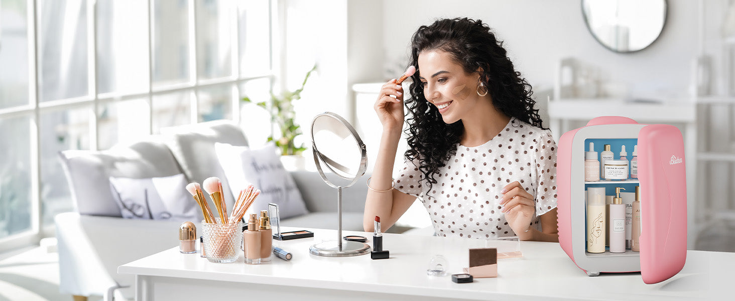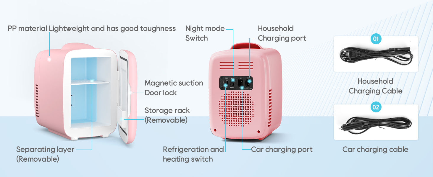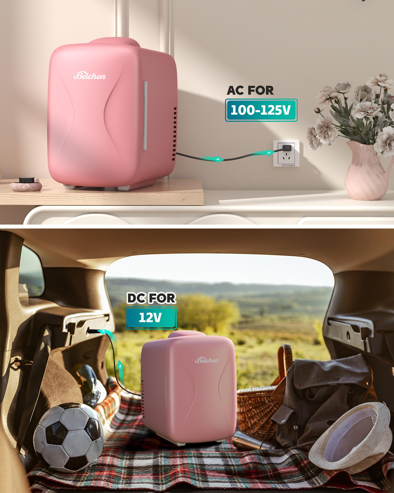Pink Mini Fridge for Bedroom,4L Skincare Fridge for Bedroom & Office