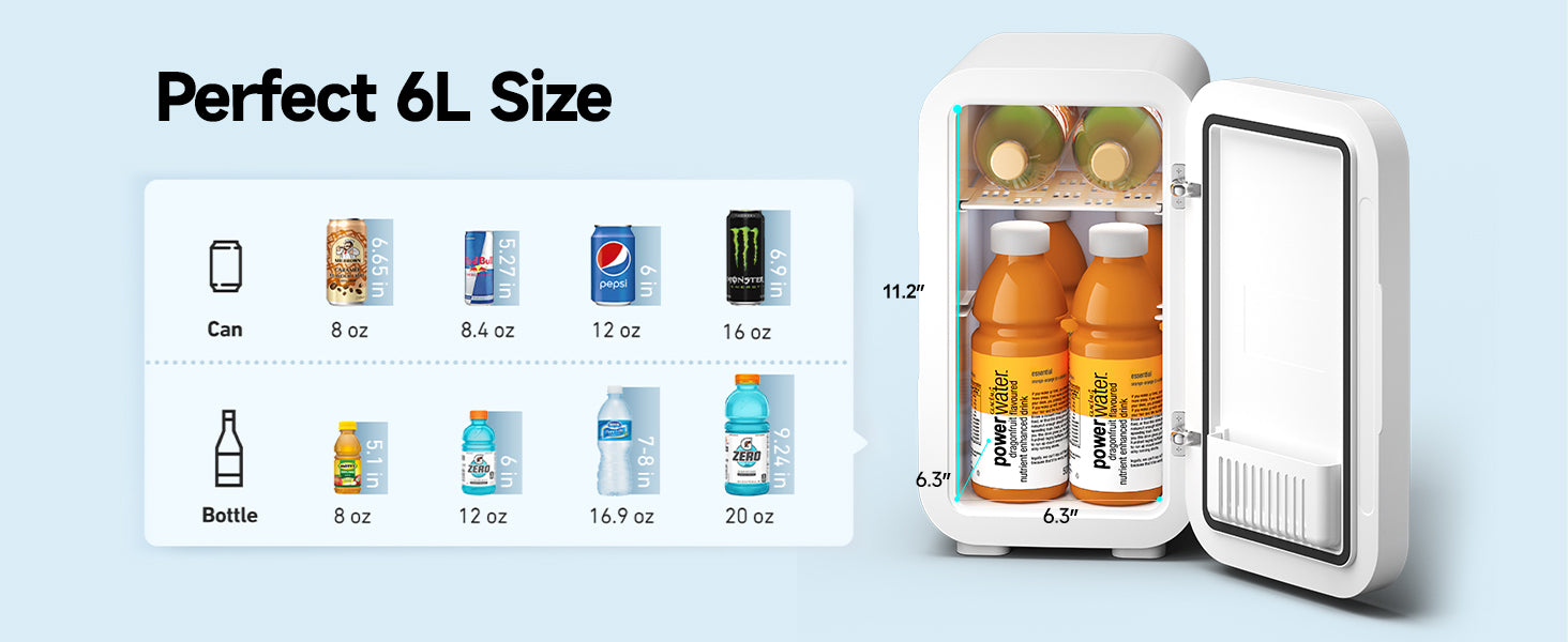 White Mini Fridge 6L | 110V AC/DC Portable Thermoelectric Cooler & Warmer